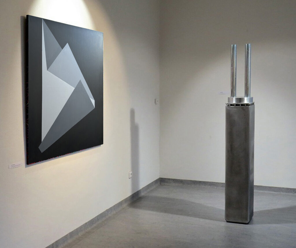 Výstava představí propojení výtvarného záznamu geometrie v podobě grafiky, malby, prostorových instalací a objektů. Geometrie je stěžejním výrazovým prostředníkem, který oba autoři používají ve své práci a výtvarné sebeprezentaci. Redukované barvy a značné tvarové kontrasty v dílech Luďka Míška doplní barevnost projekcí a systematičnost algoritmických cyklů grafiky a maleb Aleše Svobody.